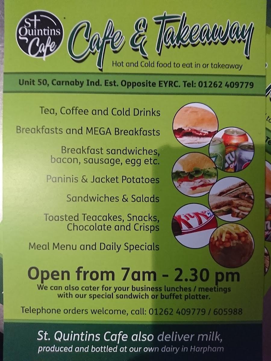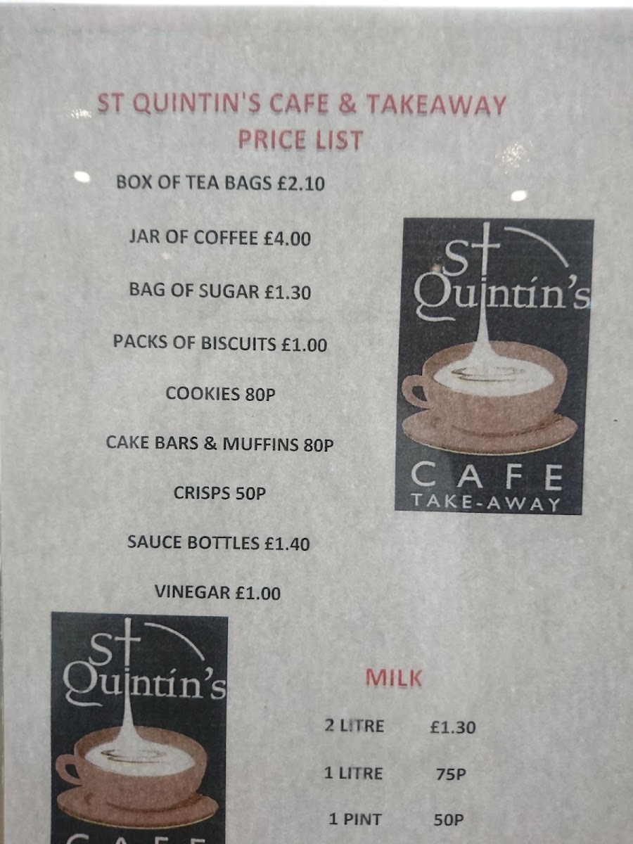 St Quintin's Cafe & Takeaway Menu