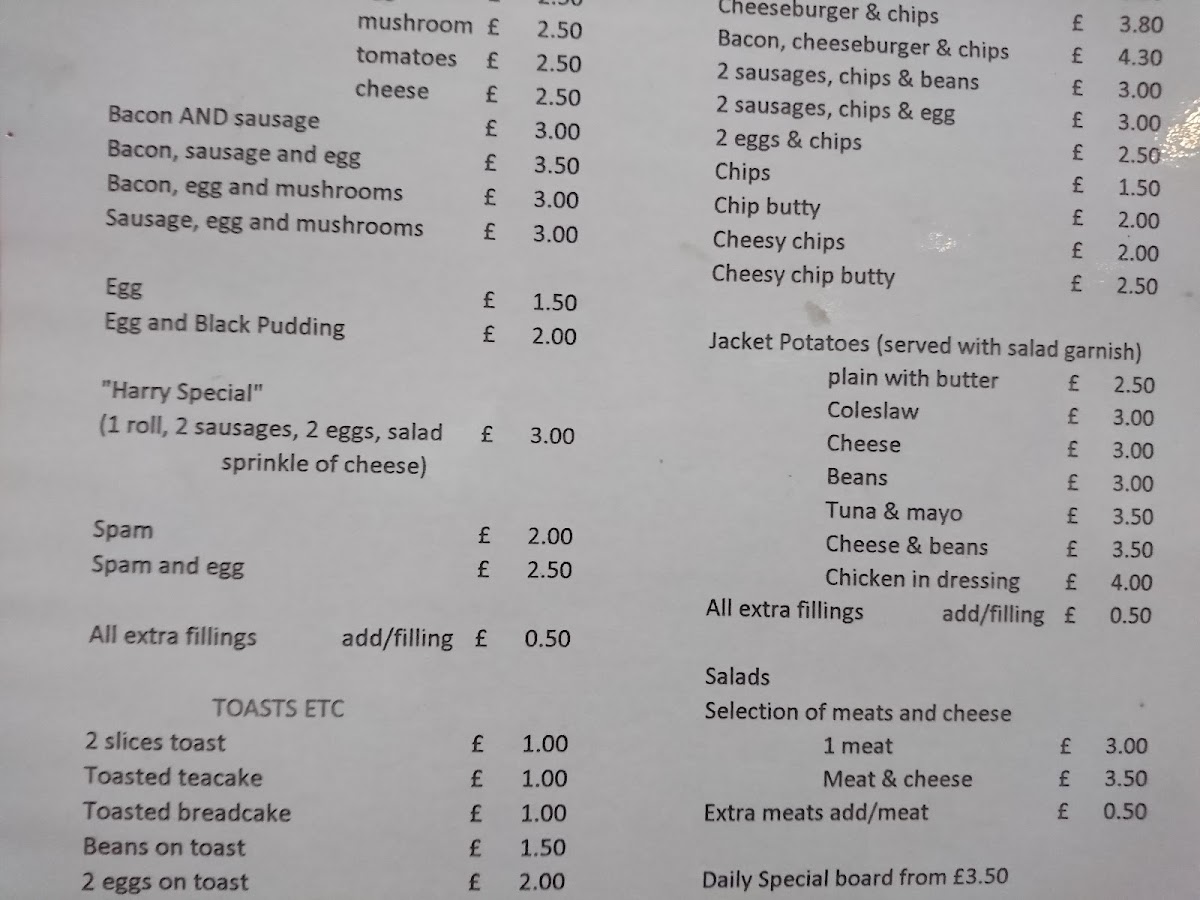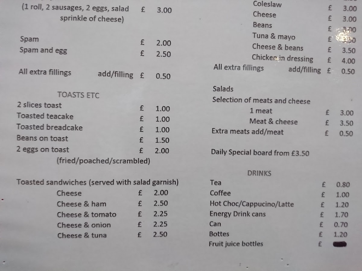 The menu is designed to accommodate quick orders for breakfast or casual meals, making it convenient for onsite dining or takeaway. The food selection focuses primarily on traditional café offerings and breakfast staples.